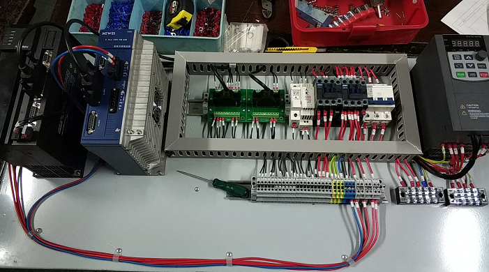 調(diào)直切斷機(jī)系統(tǒng)用到了電子凸輪運(yùn)動(dòng)功能,主流系統(tǒng)控制方案為觸摸屏、運(yùn)動(dòng)控制器、送料伺服、飛剪伺服。 科威智能伺服集伺服驅(qū)動(dòng)、PLC控制、運(yùn)動(dòng)控制于一體,正好適用于調(diào)直切斷機(jī)系統(tǒng)。科威智能伺服調(diào)直切斷機(jī)系統(tǒng)方案為觸摸屏、飛剪智能伺服、送料智能伺服。